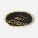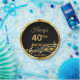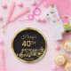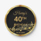 Modern and elegant black background with faux gold music notes for a 40th birthday party. Templates for the age 40 and name. The name is written in a hand-lettered style script. Golden letters and number. For both him and her.