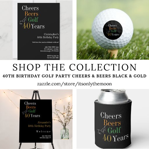 40th Birthday Golf Party Cheers Beers Black GoldDesigned by Only The Moon