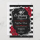 40th Birthday Invitation Black White Stripes Roses