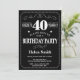 40th Birthday Invitation Chalkboard. Black and White Background. Adult Birthday. Male Men or Women Birthday. Kids Boy or Girl Lady Teen Teenage Bday Invite. 13th 15th 16th 18th 20th 21st 30th 40th 50th 60th 70th 80th 90th 100th. Any Age. For further customisation, please click the "Customise it" button and use our design tool to modify this template.