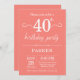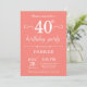 40th Birthday Invitation with Coral Background. Adult Birthday. Men or Women Bday Invite. 13th 15th 16th 18th 20th 21st 30th 40th 50th 60th 70th 80th 90th 100th, Any age. For further customisation, please click the "Customise it" button and use our design tool to modify this template.