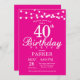 40th Birthday Invitation with String Lights. Hot Pink Background. Women Female Lady Elegant Modern bday. 13th 15th 16th 18th 20th 21st 30th 40th 50th 60th 70th 80th 90th 100th, Any age. For further customisation, please click the "Customise it" button and use our design tool to modify this template.