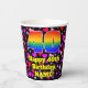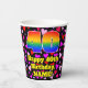 This cheerful and happy birthday-themed paper cup design features a large number “40” with a rainbow spectrum gradient inspired pattern, along with the message “Happy 40th Birthday,”, and an editable name. The background features a pattern of heart shapes with colours like red, purple, and pink. Happy, cheerful paper cups like this might be fun to use at a birthday celebration/party being held in celebration of somebody’s fortieth birthday. [~Z0000548]