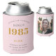 40th Birthday Name 1985 Chic Pink Grey Photo Can Cooler