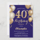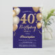 40th Birthday Navy Blue and Gold Balloons Confetti Invitation
