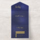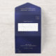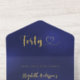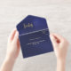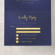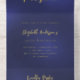 A navy blue background. The blue colour is uneven. Personalise and add name, party details, RSVP date, return address and name. Forty with a heart. Gold foil inside.