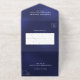 A navy blue background. The blue colour is uneven. Personalise and add name, party details, RSVP date, return address and name. Forty with a heart. Silver foil inside.