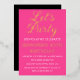 Hello Forty. Modern, QR Code, neon pink, black and gold foil, stylish 40th birthday invitations. You can personalise it with your own details.