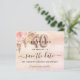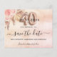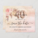A girly and trendy Save the Date for a 40th birthday party. A blush pink, rose gold gradient background decorated with blush pink florals and pampas grass. Personalise and add a date and name/age. The text: Save the Date is written with a large trendy hand lettered style script. Number 40 is written with a balloon style script.