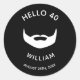 For a 40th birthday party for guys in black and white. With the text: Hello 40. With an image of a beard. Personalise and add a name and date. Curved text.