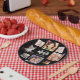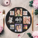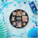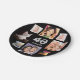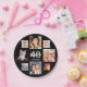 A paper plate for a 40th birthday party for a young woman celebrating her life with a collage of 8 of your own photos. Templates the age 40 and a date. Date of birth or the date of the party. White and grey coloured letters. Black background.