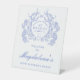 40th Birthday Party Blue Floral Crest Welcome Pedestal Sign