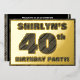 The front of this bold fortieth birthday celebration foil invitation card features a personalised name, a large number “40th”, the message “BIRTHDAY PARTY!”, and a border, all featuring a rustic, yet sophisticated, faux wood grain appearance inspired pattern. The back features personalised details about the event, such as the date, time, location, and any other important information. Editable invitations like these might be used to invite attendees/guests to a birthday party/gathering being held in celebration of somebody’s 40th birthday. [~Z0000595]
