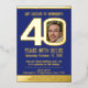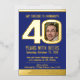 Bold simple graphic Say Cheers with beers dark blue, and gold foil or your own foil colour photo template 40th birthday party invitation. Personalise this milestone birthday invitation with your own birthday party event details, and a photos of your birthday boy or girl in the centre of the 0 in 40 and one full bleed out photo on the reverse. Other years colours and matching items are available. © Original design by Sarah Trett for www.mylittleeden.com on Zazzle.