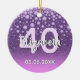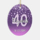 An elegant, glamorous and girly 40th birthday ornament. Purple and pink colored faux glitter with faux diamond sprinkle and a golden frame. Templates for a name, age 40 and a date. Date of birth or the date of the party/anniversary. White and pink colored letters. The name is written with a hand-lettered style script. Can be used as a favor, birthday gift or as a keepsake from your big day.