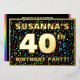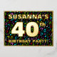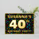 The front of this vibrant fortieth birthday celebration foil invitation card design features a customisable name, a large number “40th”, the message “BIRTHDAY PARTY!”, and a border. The background of the front features an exciting, colourful pattern of musical symbols and notes. The back features personalised details about the event, such as the date, time, venue/place, and any other information that may be important. Personalised invitations like these might be a fun way to invite attendees to a birthday party/gathering being held in celebration of somebody’s 40th birthday. These might be more meaningful if that person is a composer, a singer, a songwriter, a musician, or a lover of music. [~Z0000601]