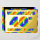The front of this upbeat and fun fortieth birthday party foil invitation card features a personalised name, a large number “40th”, the message “BIRTHDAY PARTY!”, and a border, all featuring a joyful, multicolored, rainbow spectrum inspired gradient pattern. The back features personalised details about the event, such as the date, time, place/venue, and any other important information. Eye-Catching, vibrant, editable invitations like these might be used to invite guests to a birthday gathering being held in celebration of somebody’s 40th birthday. [~Z0000593]