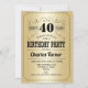 40th birthday party invitation for men or women. Elegant retro faux gold foil and black design. Features stylish typography font. Cheers to 40 years! Can be customised into any age. Printed Zazzle invitations or instant download digital template.
