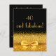 Elegant, classic, glamourous and feminine style party invitation. A gold coloured ribbon and bow with golden glitter and sparkle, a bit of bling and luxury for a birthday. Black background. With the text: 40 and fabulous! on front
