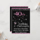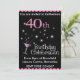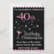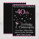 40th Birthday Party Invitation, pink and black with cocktail glass