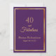 Elegant, classic, and simple 40th birthday party invitation. Chic feminine dark purple background colour with a simple slim faux gold frame. On front: The text: 40 and fabulous. Templates for her name and a date. Date of birth or the date of the party. Golden letters.