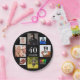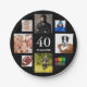A paper plate for a 40 birthday party for a man, guy, celebrating his life with a collage of 8 of your own photos.  Templates the age 40 and a date.  Date of birth or the date of the party.  White coloured letters.  Black background.