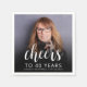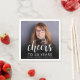 This custom 40th birthday napkin features the guest of honour's personalised photo, name, and birthday, along with the word "Cheers" in elegant white calligraphy script. A dark screen helps make the text pop. A great way to celebrate someone who's turning forty!
