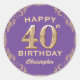40th Birthday Party Purple and Gold Glitter Frame Classic Round Sticker