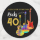 Personalised Rocks 40 guitar 40th birthday party table confetti with three cool watercolor guitar designs on black background. An electric guitar with Fire flame pattern and red pick guard, a multicolored semi acoustic guitar and a psychedelic classic acoustic guitar art illustration with personalised black and gold modern cool typography. This easy to use template creates the perfect party decor to celebrate forty in rock n roll style and is ideal for a guitarist, musician and music lovers. Any guitar player will tell you that you can never have too many guitars. This cool modern musical instrument design celebrates the music energy of this wonderful musical instrument and is the perfect way to rock a fortieth birthday celebration. Original artwork by artist Catherine Sweetman