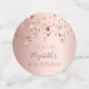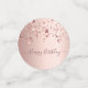 Girly and feminine confetti for your 40th birthday party table setting. A rose gold faux metallic, foil looking background decorated with dripping stars in rose gold. Templates for a date and name/age 40. Dark rose gold coloured letters. Some confetti chips with name and date, others with the text: Happy Birthday written with a trendy handlettered script with swashes.