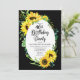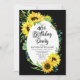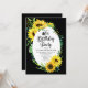 Classy and stylishly modern sunny sunflowers and eucalyptus greenery frame design "40th Birthday Party" on an editable black background. Back features a coordinating sunflower bouquet also on an editable black background.