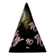 Personalised custom photo and name birthday party hat. Ideal for a special fortieth birthday party celebration. Glitter effect pink and silver forty and 40 text design on black. Add your own photo and birthday girls name. Original art and design by Sarah Trett for www.mylittleeden.com