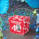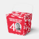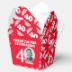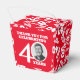 Bright add your own photo and name party favour boxes. Ideal for a special boys 40th birthday party celebration to give you guests and parting thank you gift. Colourful red white design. Other matching items are available. Original graphic art and design by Sarah Trett for www.mylittleeden.com