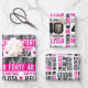 Simple hot pink, black and white 40th birthday wrapping. Bright graphic birthday milestone wrapping paper with photo placeholders for your own photos customise with your own name. Other matching 40th items are available. Unique design by www.mylittleeden.com