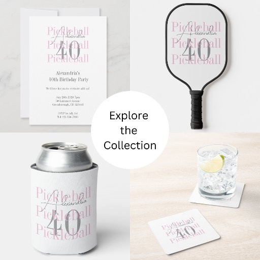This is a modern and stylish, 40th birthday design with a pickleball theme. It is a chic, minimal design, in trending pink, grey and white. Perfect for a cool and fun, pickleball themed, 40th birthday party. It has a personalised pickleball typography design with space to add your name and age, and party info and RSVP details. This design is fully customisable, simply use the personalise this button to add your name and celebration details. To change the colour or font, check out the design editing tool. If you need help with personalisation, matching products, or for a custom design contact me via zazzle chat or email: ursuladawnmoon@gmail.com