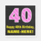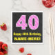 40th Birthday: Pink Stripes and Hearts "40" + Name Napkin