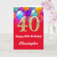 40th Birthday Red and Gold Colourful Balloons Birthday Card. For further customisation, please click the "Customise it" button and use our design tool to modify this template.