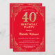 40th Birthday Red and Gold Glitter Frame Invitation