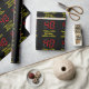 This fun and geeky birthday-themed wrapping paper design features a large number "40" with a red seven segment digital display inspired appearance, along with the message "Happy 40th Birthday," and a personalised name in nerdy computing-inspired yellow text, on a black coloured background. Wrapping paper like this might be used when giving a gift or present in honour of somebody’s fortieth birthday. [~Z0000387]