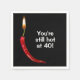 Red pepper on black background with candle wick and flame for 40th birthday.