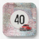 40th Birthday Red Retro Truck on Road Map Paper Plate