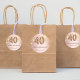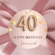 Elegant, classic, glamourous and girly for a 40th birthday party. Rose gold and blush pink, gradient background. Decorated with faux gold sparkling stars. Personalise and add a name. With the text: Happy Birthday plus the birthday girls name. The name is written with a modern dark rose coloured hand lettered style script. Number 40 is written with a balloon style font.