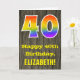The front of this colourful yet rustic birthday-themed greeting card design features a large number "40" having a rainbow spectrum gradient inspired pattern. It also features the message "Happy 40th Birthday,", and a custom recipient name. The front features a background depicting a rustic faux wood grain inspired pattern. The inside features a custom birthday greeting message, or could perhaps be cleared and left blank if a message is to be written by hand instead. A customisable birthday card like this might be a fun way to celebrate somebody’s fortieth birthday. [~Z0000419]