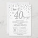 40th Birthday Invitation with Silver Glitter Diamond Background. Silver Confetti. Adult Birthday. Male Men or Women Birthday. For further customisation, please click the "Customise it" button and use our design tool to modify this template.