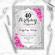 40th Birthday - Silver Stripes Pink Roses Invitation