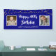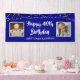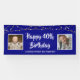 Celebrate a 40th (or any age) birthday with this editable royal blue banner sign featuring two photos (perhaps Then and Now pictures) of him or her, the suggested title HAPPY 40TH BIRTHDAY in your choice of font styles and colours (shown in a brush stroke font in white), personalised with their name or your custom text and accented with gold and white string lights. Make changes in EDIT. BANNER OPTIONS: The sample is shown in the 2.5x6' size; other sizes are available on the ordering page as well as the option of transferring the design to a foam board, poster, tapestry or other product or have the designer convert it to a DIGITAL DOWNLOAD file BEFORE ordering to print locally. ASSISTANCE: For help with design modification or personalisation, colour change, resizing, transferring the design to another product or if you would like coordinating items, contact the designer BEFORE ordering via Zazzle Chat or email makeitaboutyoustore@gmail.com.