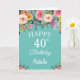 40th Birthday Watercolor Floral Flowers Teal Card with personalised name and age. For further customisation, please click the "Customise it" button and use our design tool to modify this template.