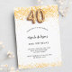 For an elegant 40th birthday party. A chic white background. Decorated with golden confetti. Personalise and add a name and party details. The name is written with a hand lettered style script. Number 40 with balloon style font.