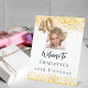 A welcome sign for a feminine and glamourous 40th birthday party. A white background decorated with colden confetti. Personalise and add a photo and name. Number 40 is written with a balloon style font.
