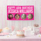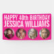 Bold simple graphic hot pink and white four photo template 40th birthday banner. Personalise this milestone birthday banner with your own birthday party event details, and four different photos of your birthday girl in the photo circles ideal for a photo from each decade. Other years colours and matching items are available and can be created on request. © Original design by Sarah Trett for www.mylittleeden.com on Zazzle.
